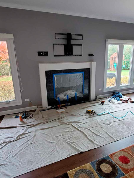 Laminate flooring - Tiles - Painting - Drywall - Plastering - Bathroom vanity installation - Fireplace designs - New skies light windows